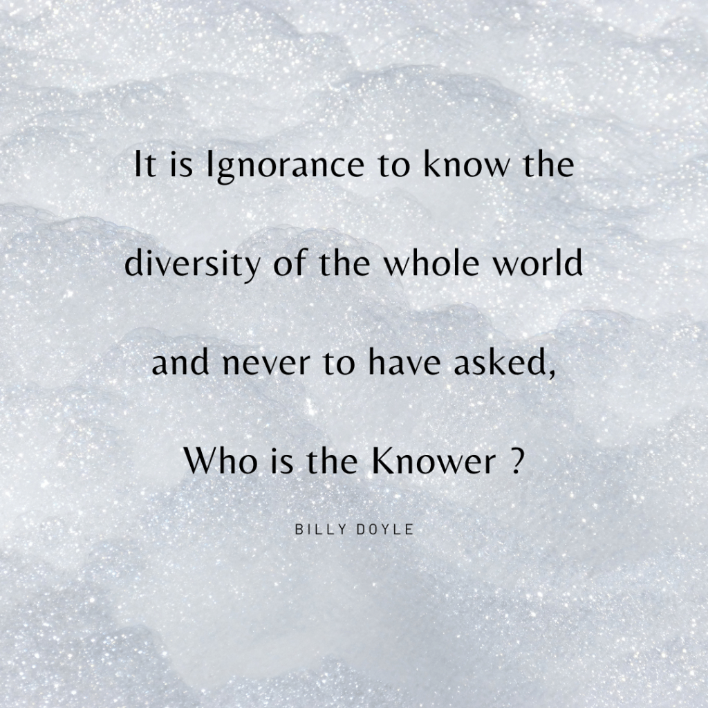 by Astitva Well Being Posted on May 13, 2021 Image Who is the Knower ? ~ Billy Doyle It is Ignorance to know the diversity of the whole world and never to have asked, Who is the Knower ? ~ Billy Doyle Share this: Click to share on X (Opens in new window) X Click to share on Facebook (Opens in new window) Facebook Like Loading... Related