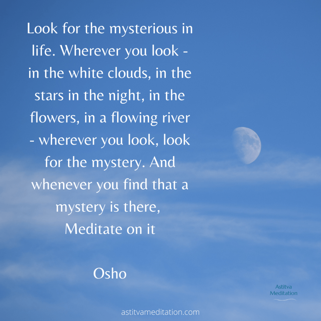 by Astitva Well Being Posted on May 23, 2021 Image Look for the mysterious in life ~ Osho Look for the mysterious in life. And whenever you find that a mystery is there, meditate on it ~ Osho Share this: Click to share on X (Opens in new window) X Click to share on Facebook (Opens in new window) Facebook Like Loading... Related