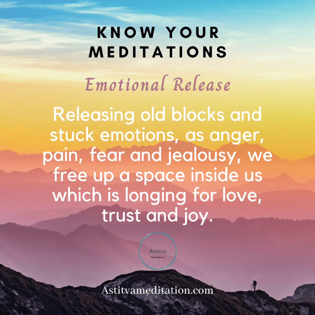 Emotional Release – Releasing old blocks and stuck emotions, as anger, pain, fear and jealousy, we free up a space inside us which is longing for love, trust and joy.
