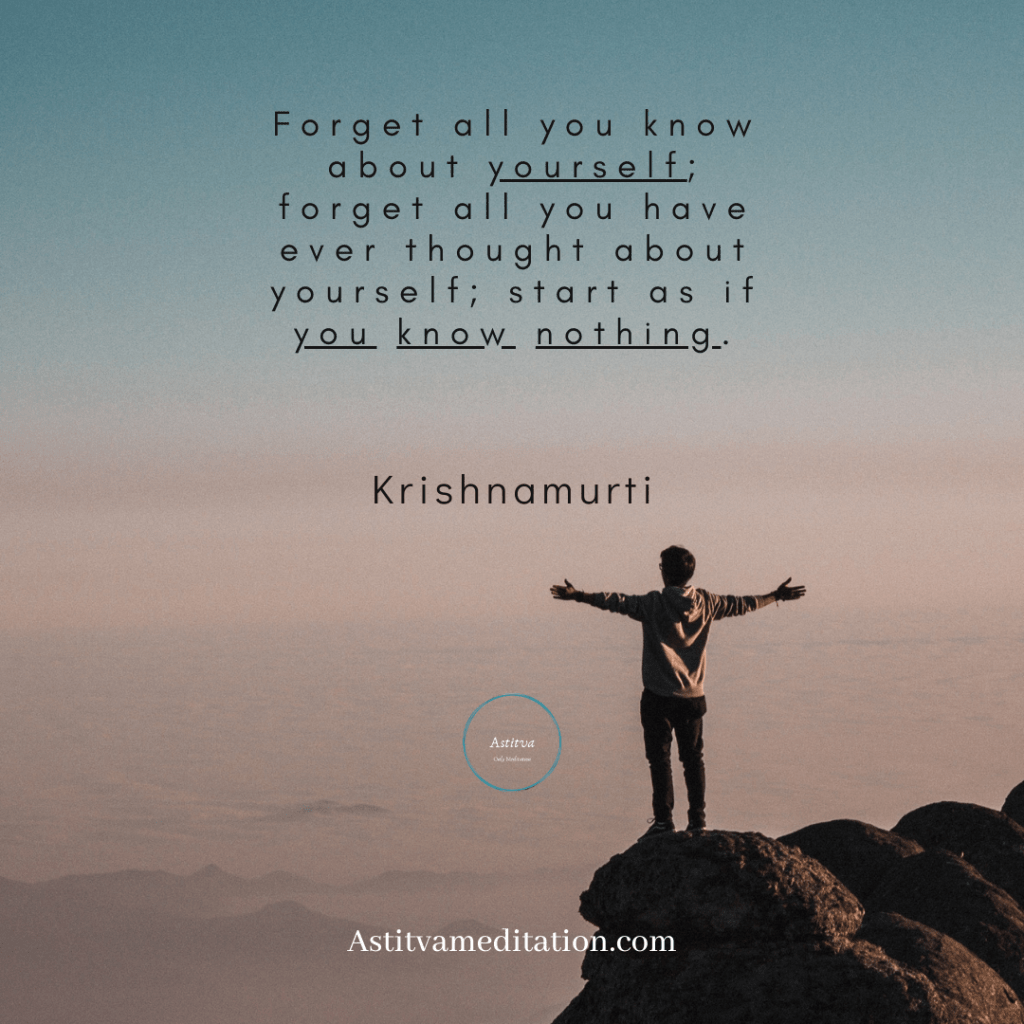 Forget all you know about yourself; forget all you have ever thought about yourself; start as if you know nothing.